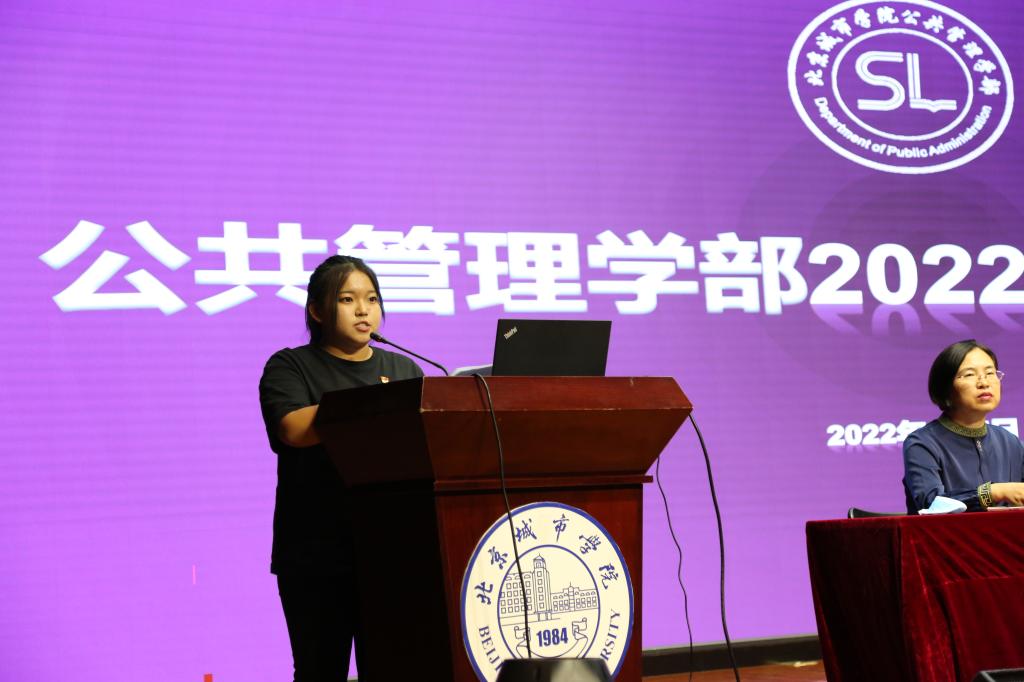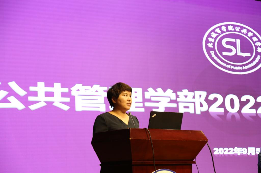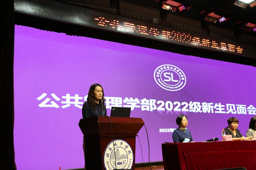学部见面会由教务科科长田中秀主持,第一个环节由公共管理学部主任张会莹代表学部欢迎新生致辞,主要围绕“小而精”的学部特点从办学层次、社会影响力、师资力量等方面对学部情况做全面系统的介绍,学部秉承“依靠行业、服务行业、引领行业”的理念,从培养定位、科研定位、办学成果等方面体现“应用型”特色。
