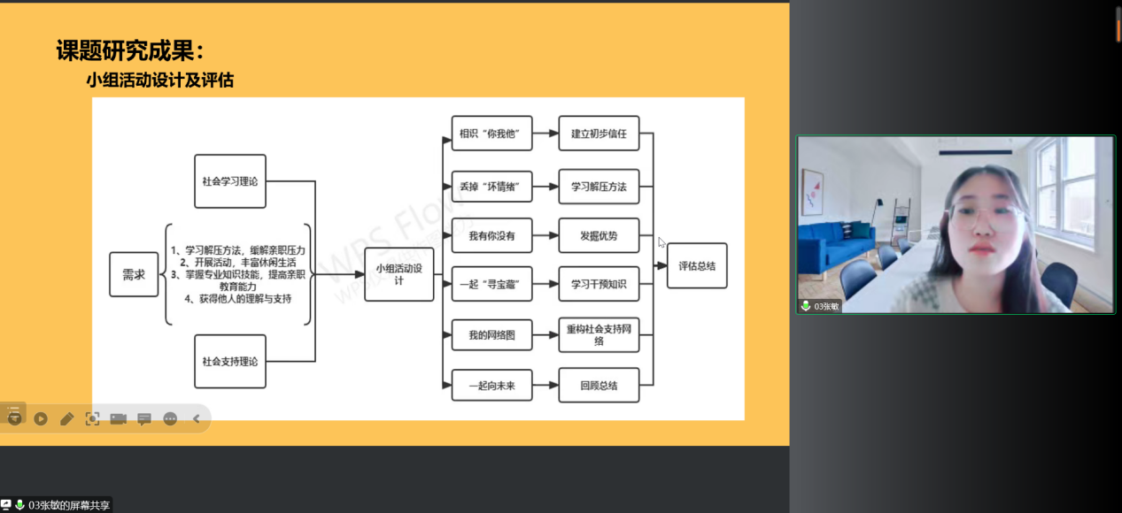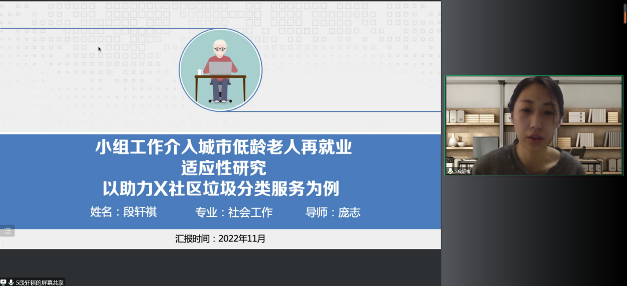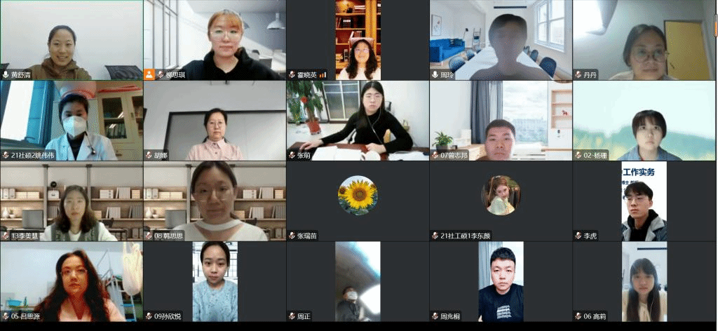 2022年11月17日,公共管理学部MSW教育发展中心召开2022年度研究生科研创新项目中期检查线上答辩会。研究生学术导师蔡永芳、李艳玲、张世霞、霍晓英、周玲、王丹,研究生秘书黄舒清,以及21级科创项目负责人参加本次答辩会。