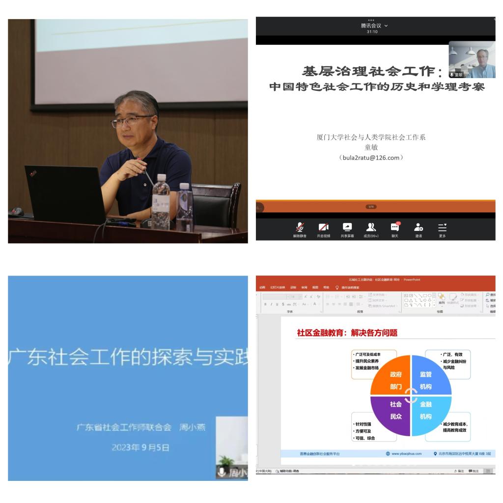 此次工作坊系列活动特别邀请了北京大学社会学系教授刘能、厦门大学社会与人类学院教授童敏、广东省社会工作师联合会会长周小燕以及sunbet申搏官方网站社会工作实务研究中心副教授周玲。4位老师分别从“广东社会工作的探索与实践”“中国特色社会工作的历史和学理考察”“社会治理创新和基层社会建设”和“社区金融教育”等主题出发为社会工作专业师生开展了分享和交流,累计参会师生千余人次。