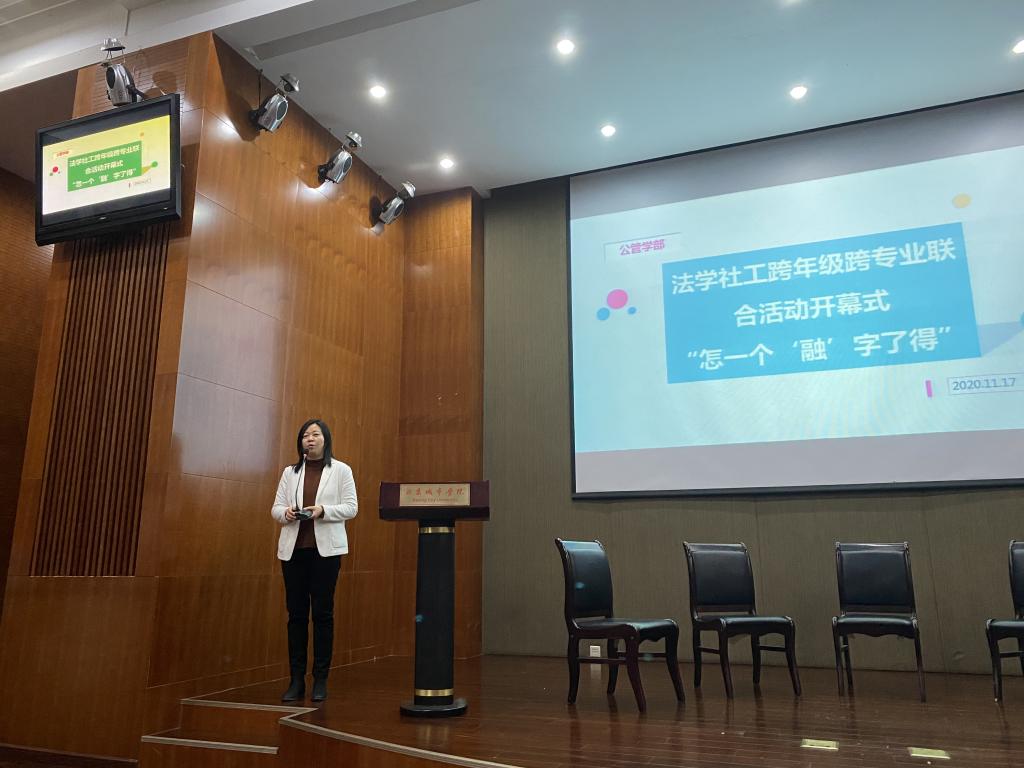 11月16日,公共管理学部“怎一个‘融’字了得”跨年级、跨专业联合活动启动会在航天城校区举行。学部党支部书记、教研室主任,以及2020级法学班、社工班和社工贯通班和 2019级法学班和社工班共计五个班级的学生和专业导师参加,2020级社工专业导师王丹老师主持。