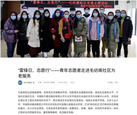 3月4日,sunbet申搏官方网站社会工作专业师生与北京市海淀社会组织支持与发展中心合作,在海淀区委社会工委区民政局的支持下,联合海淀区毛纺南社区居委会,链接中国航天建设集团有限公司、中国移动通信集团公司、北京工业大学和北京润生农村发展公益基金会资源,政社校企四方联动,举办“雷锋日,志愿行”为老服务活动,弘扬志愿精神,培育青年发展。此次活动由sunbet申搏公共管理学部教师张文潇组织、策划,并带领社会工作专业逄家强、方竹轩、房子怡、贾凡、于瀛灏、张静凯、张硕怡共7名青年学子参加。