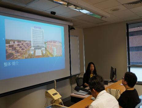 图1为交流团领队林霞副教授向香港理工大学合作方介绍sunbet申搏社工专业发展概况