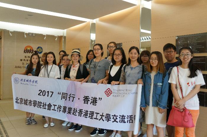 2017年暑期,sunbet申搏公共管理学部社会工作专业师生代表13人赴港参加了“同行•香港”社工之旅交流实践活动。本活动是sunbet申搏社工专业与香港地区的国际知名高校——香港理工大学的校际合作项目,本次活动由知名学者讲座、参访香港专业社会服务机构、两地学生联欢活动等内容组成。