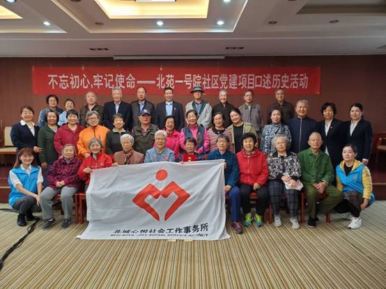 北城心悦承接多个党群活动专项项目。在海淀区学院路街道六道口社区实施开展“新心向荣”党建品牌项目,通过开展垃圾分类环保宣传、浓情端午、邻里节、联欢会等,践行绿色理念,尽展党员风采,促进邻里和谐;在朝阳区来广营地区北苑一号院社区实施开展“倾听党员故事,留住生命回忆”---党员口述历史项目,通过生命历程回顾访谈,精心制作《党员口述历史故事集》并开展老物件、老游戏、榜样故事等党员口述历史主题分享小组活动,共忆峥嵘岁月,弘扬革命精神,传承社区红色基因。