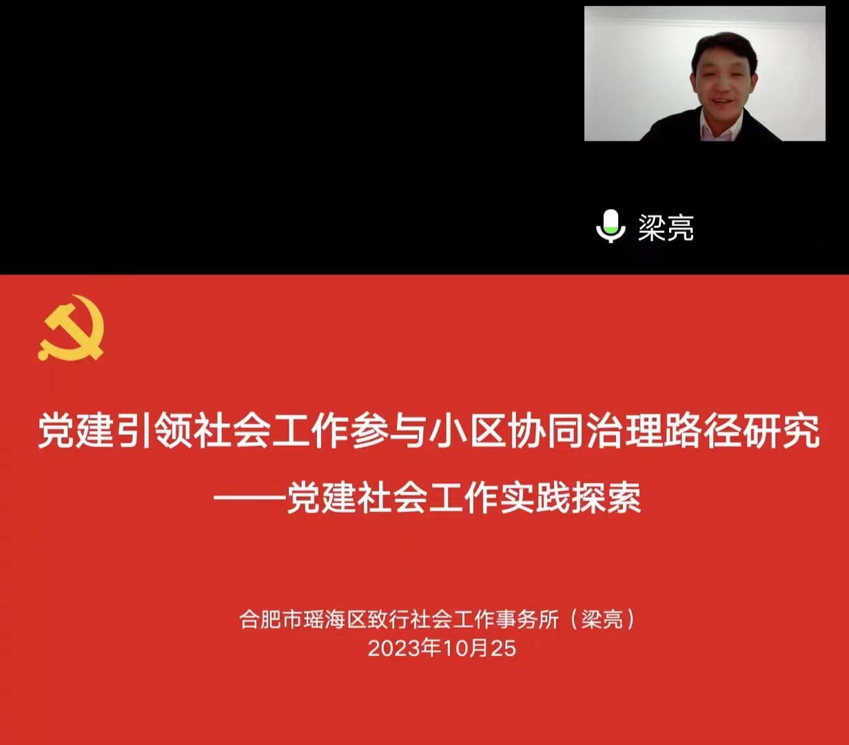 10月25日晚,公管学部社工实务研究中心邀请2016届社工系校友梁亮带来一场“党建引领社会工作参与小区协同治理路径研究”的线上主题讲座,共计50余名在校师生和校友参与其中。本次讲座为社工实务中心首批特聘讲座嘉宾的分享讲座,以期增进学界与实务界、校内外同伴间的联动,建立起产学研合作机制与路径。