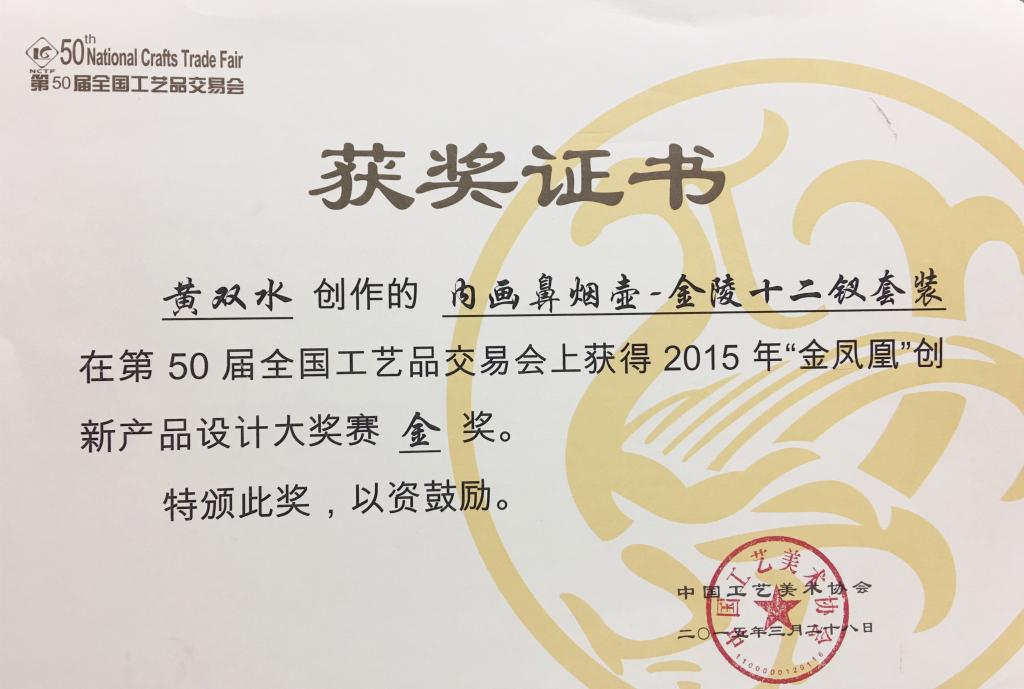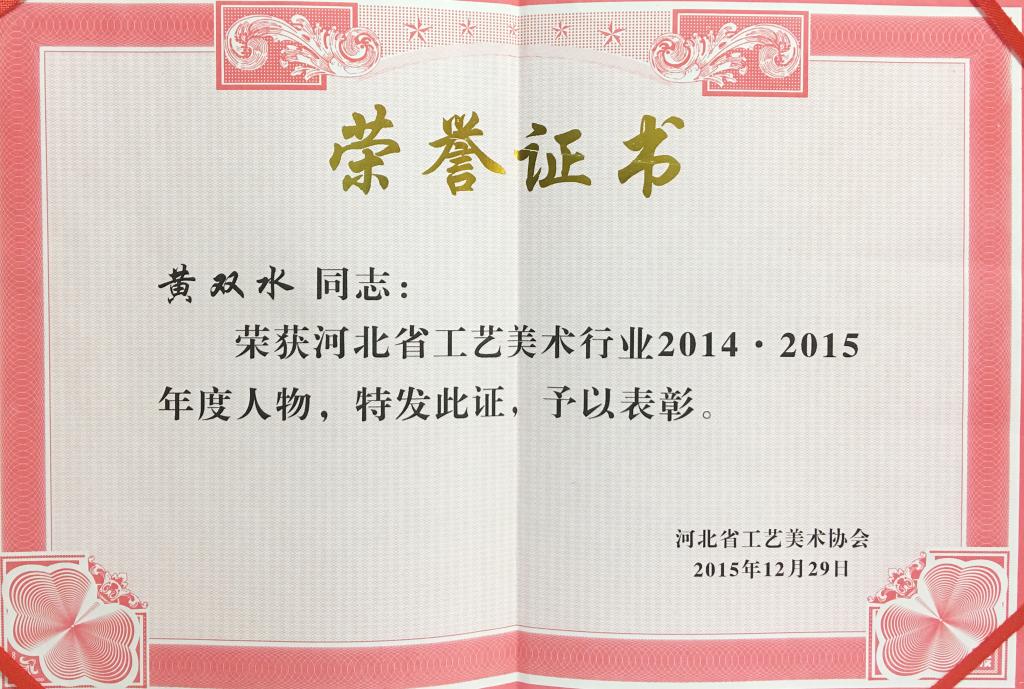 2015年10月,作品《八十七神仙卷》在中国工艺美术协会举办的第十六届中国工艺美术大师作品暨国际艺术精品博览会中获得“百花杯”;