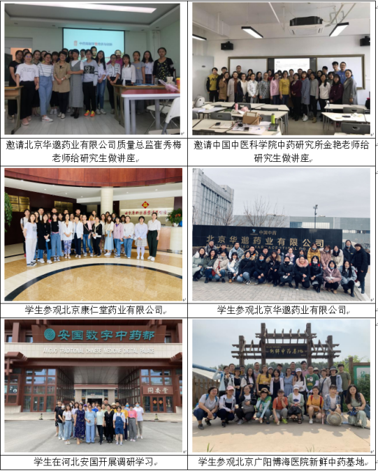 结合中药学人才培养发展实际需要,在培养方案制定、课程设置和实践教学与论文研究等方面与中国中医科学院、医科院药植所、北京市科学技术研究院、北京市药品检验研究院等科研院所,中国中药公司、北京同仁堂、北京康仁堂药业等企业在学生行业实践、论文研究与写作方面进行密切合作,增强应用型专业技能训练的同时培养学生的创新能力和科研思维。同时,结合生物技术在中医药发展中的应用以及药食两用中药在保健品研发等领域的不断拓展,MCMM中心在此相关领域学生能力培养上,聘请来自医科院生物技术研究所、中国食品发酵研究院等单位的行业导师,共同作为中药学专硕研究生培养的主体,实现培养人才与行业技术应用无缝衔接的目标。