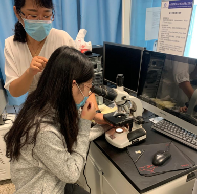 崔凌云副教授指导研究生利用显微镜鉴别纸张