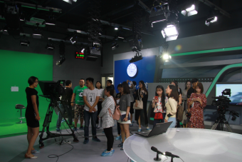 学生在《广播电视创作实践》课程实践的拍摄现场