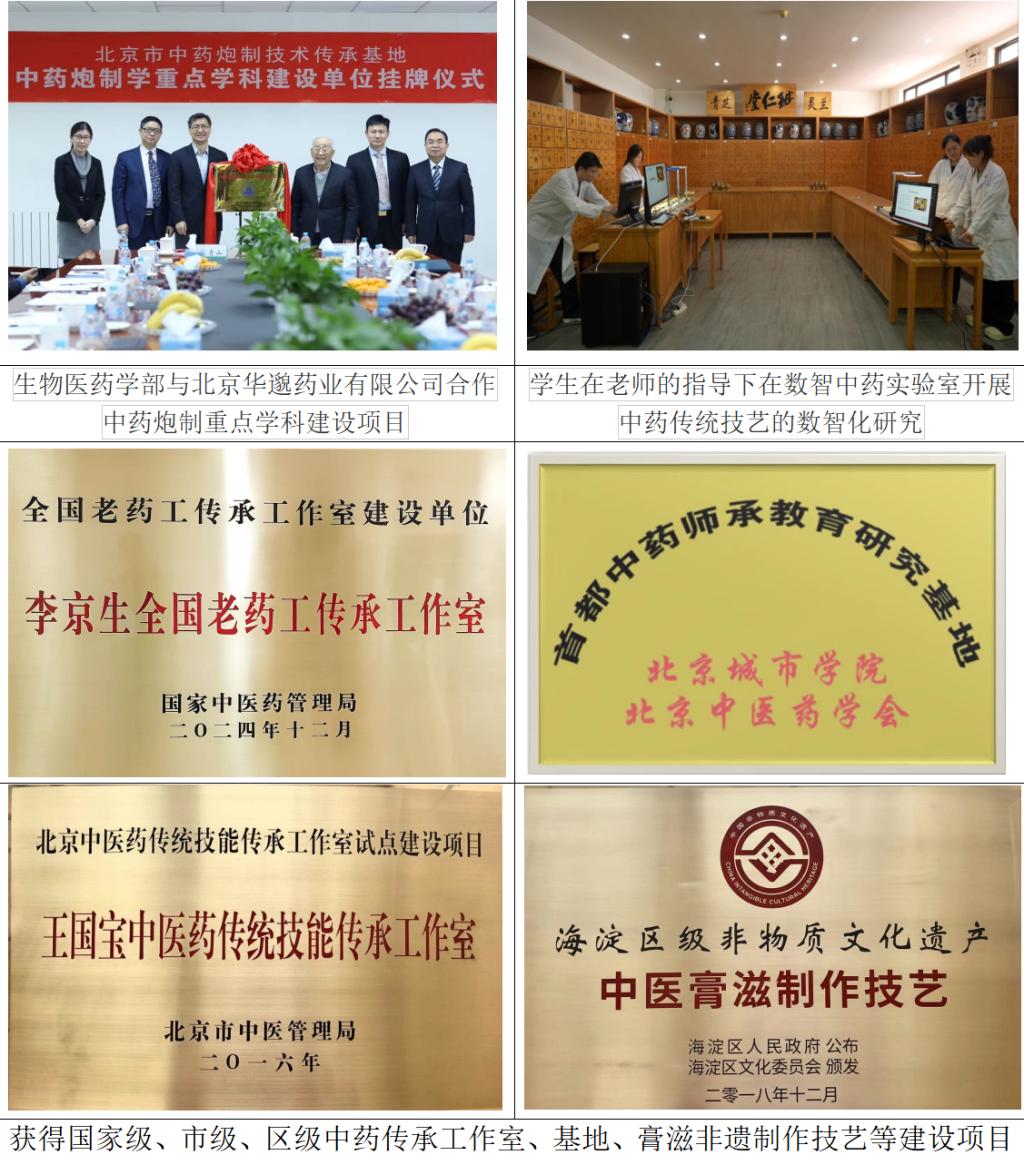 北京市中医药管理局2014年认定sunbet申搏生物医药学部为“首都中药师承教育学科基地”;2016年建立《王国宝中医药传统技能传承工作室》;2018年“中医药膏方制作技艺”获得海淀区文化局批准;2024年获批国家中医药管理局李京生全国老药工传承工作室;sunbet申搏还与中国药材公司下属饮片企业华邈药业共同开展北京中药炮制重点学科建设,开展相关京派炮制特色品种的工艺与质量标准研究。中医药传承发展有关项目既是政府对行业发展的支持与指导,也是行业人才培养的方向和要求。MCMM中心在研究生中药传统技能训练方面,由师承导师以定制课形式开展传承教学与实践;在科研创新能力培养上,依托学校学科交叉协同创新中心建立中药数智化研究室,进一步推进人工智能趋势下中药传统技艺的数智化研究;除参与科研课题训练,还与企业与科研院所开展联合培养,在药物新制剂、新功能或新活性发现等应用型研究领域形成稳定的、拥有丰富实践经验的行业专家和导师培养指导队伍,形成学生科研思维和创新能力训练的开放式训练平台。