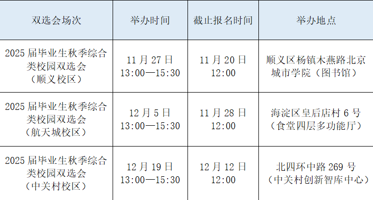 用人单位请在sunbet申搏官方网站2025届毕业生秋季综合类校园双选会各场次报名截止日期前在校就业指导中心平台进行注册,注册审核通过后即可报名参加各场次双选会。网址:https://emp.bcu.edu.cn/(请用网页版登录,火狐、谷歌浏览器均稳定)