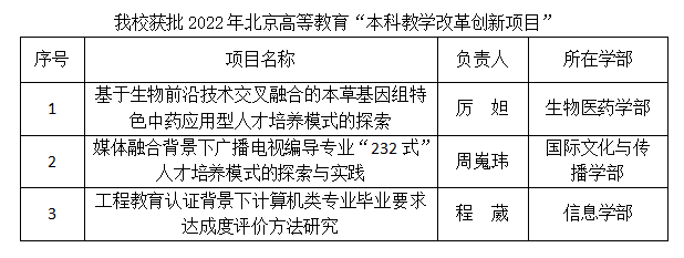 近日,北京市教育委员会发布《关于公布2022年北京高等教育本科教学改革创新项目的通知》(京教函〔2022〕395号),sunbet申搏《基于生物前沿技术交叉融合的本草基因组特色中药应用型人才培养模式的探索》等3个项目获批为2022年北京高等教育“本科教学改革创新项目”。