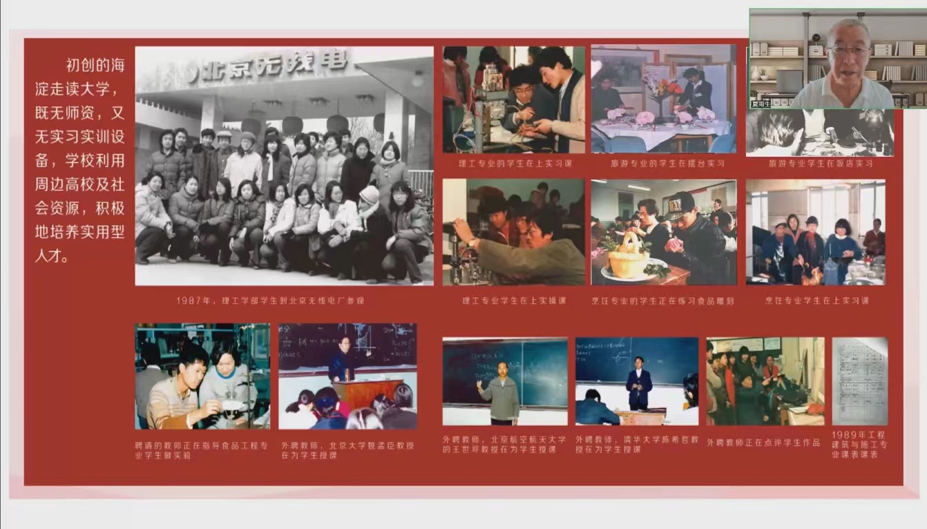 在“创业”篇章,学校第一位入职的应届大学毕业生王育讲述了创校的时代背景以及老一辈教育者办学的坚定信念;原航天城校区主任庞东辉、原大学城校区主任夏雨生两位老师展示了校舍的变迁及早期教学和学生活动的情况,并着重结合学校在高等教育中的开创性,解读了“改革探索、勤奋进取、艰苦创业、开拓前进”校训的精神内涵。