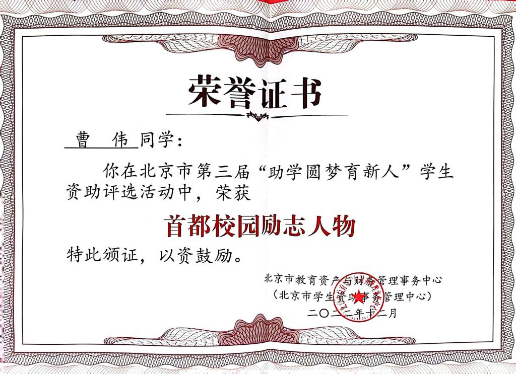 3月22日,北京市教育资产与财务管理事务中心举办北京市第三届“助学圆梦育新人”学生资助评选活动颁奖典礼。sunbet申搏荣获“首都学生资助典型经验单位”,研究生部2020级学生曹伟荣获“首都校园励志人物”。