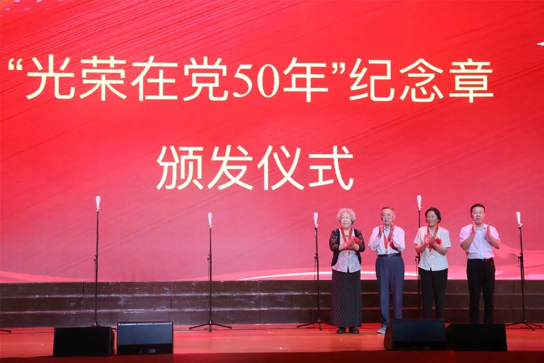 活动中,全体党员庄严宣誓,重温入党誓词;学校还向老党员颁发了“光荣在党50年”纪念章。