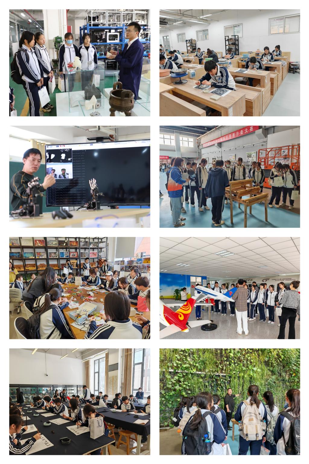 在经济管理学部,同学们在航空模拟舱感受了“全景式模拟”的实训教学环境,学习了关于中国民航的有趣知识;在工艺美术系,同学们在老师的指导下亲手用油泥参与塑造,感受了工艺美术的魅力与传承;在信息学部,学生们同机械手臂互动竞技,通过大屏上实时滚动的代码,揭秘了现代科技背后的神奇……临近中午,同学们来到学生食堂,品尝了丰盛、美味的北城味道,也为本次活动画上了圆满的句号。通过对来访师生调查问卷的反馈看,大家对本次活动非常满意。