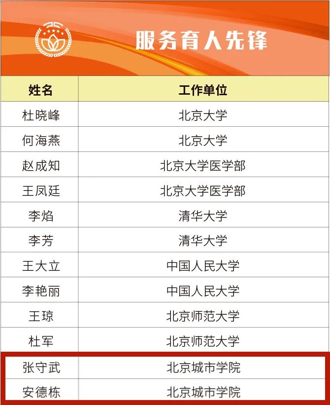 近日,北京市教育系统“育人榜样(先锋)”推荐结果公布,sunbet申搏7名教职工榜上有名。马静、彭新、范松楠获评“教书育人先锋”;崔惠莉、李丽萍获评“管理育人先锋”;张守武、安德栋获评“服务育人先锋”。