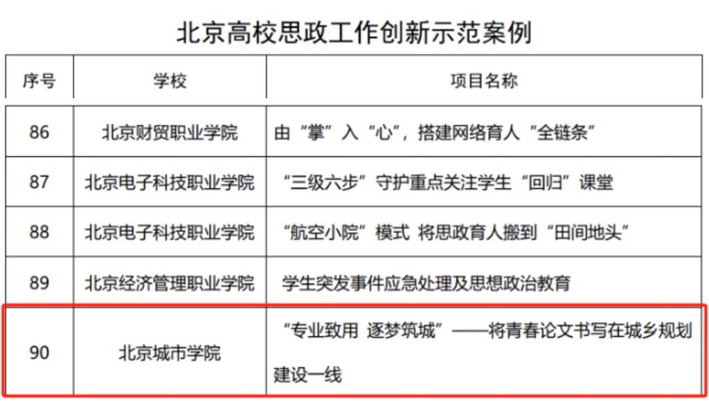 新时代北京高校思想政治工作创新示范项目遴选工作旨在深入推动“时代新人铸魂工程”,加快构建高校思想政治工作新生态,提升高校思想政治工作队伍的能力素质。经学校申报、资格认定、专家会评、现场展示等环节,共遴选出北京高校思政工作创新示范工作室30个、培育工作室15个,北京高校“一站式”学生社区示范项目10个、培育项目8个,北京高校思政工作创新示范案例90项。