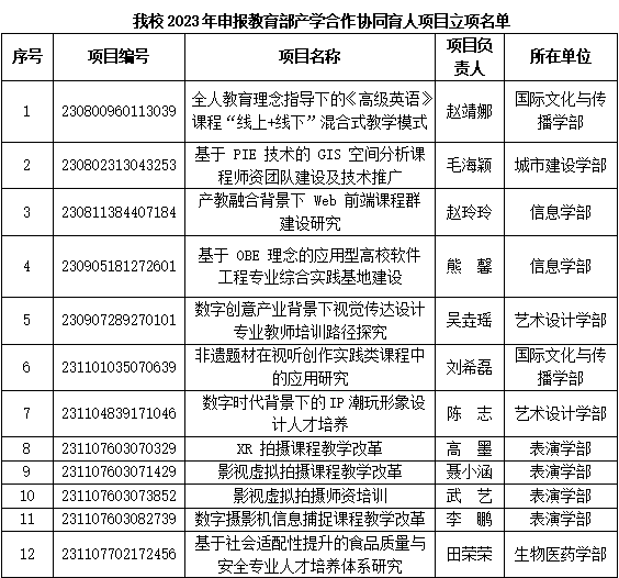 近日,教育部高等教育司公布了2024年第一批产学合作协同育人项目立项名单,sunbet申搏10个项目获批立项。加上前期获批的2个项目,sunbet申搏2023年申请的项目共获批立项12个。