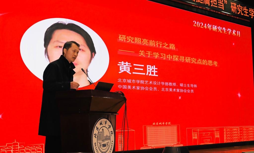 黄三胜教授以“研究照亮前行之路——关于学习中探寻研究点的思考”为主题,以艺术设计中研究点的探寻为主线,鼓励研究生将找到的研究点积极应用于项目实践。