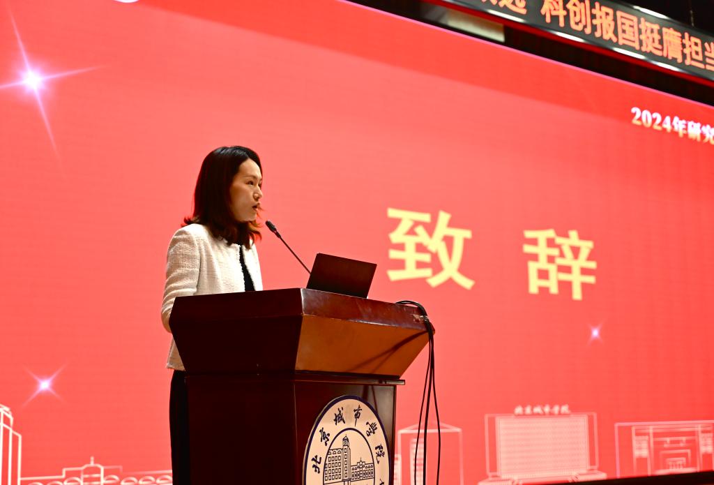 研究生部主任张会莹在开幕致辞中系统回顾了学校建校40周年风雨兼程之来路,深刻阐述了研究生开展科研工作的必要性和重要性,并对研究生寄予三点殷切期望:第一,科研的灵魂是探索创新,要保持专业好奇心与探索精神;第二,科研的本质是求真求实,要培养严谨的科研态度;第三,科研的底线是学术道德,要注重伦理与责任。希望每位研究生都能在学术道路上不断攀登,成为具有深厚学术底蕴、创新精神和社会责任感的优秀人才。