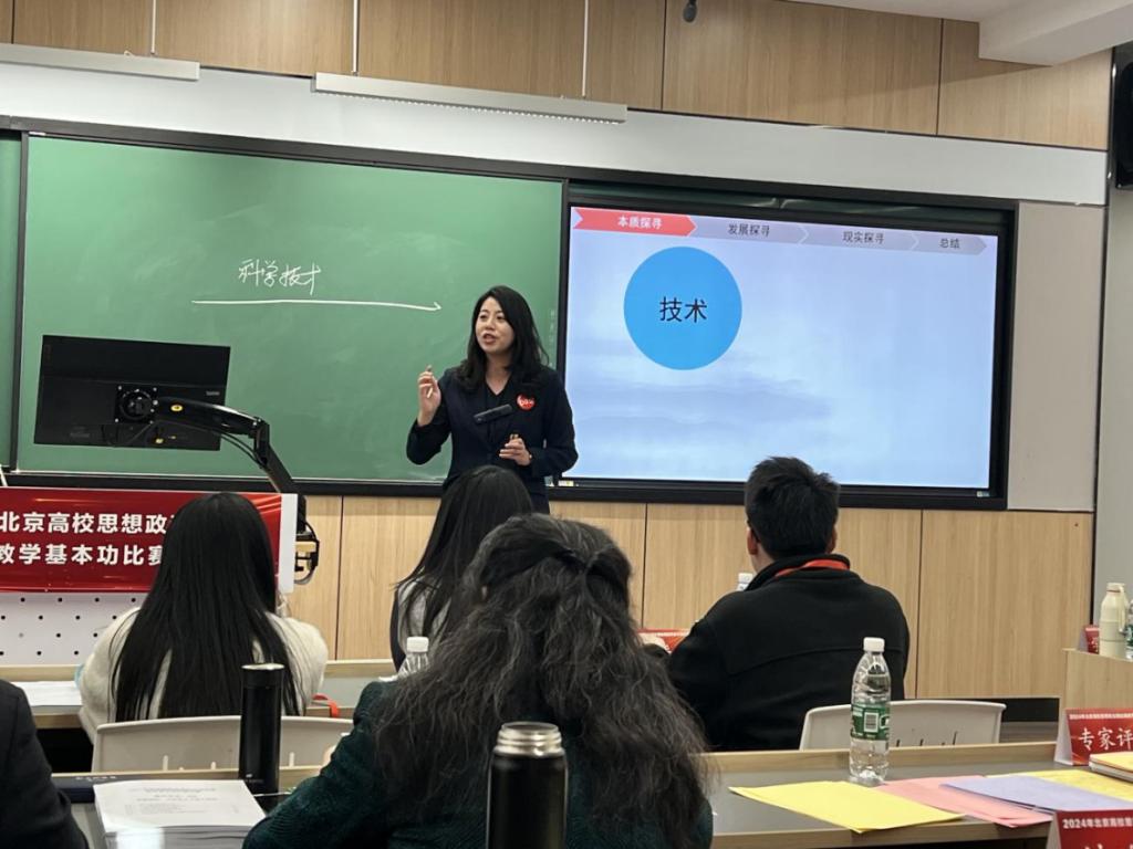 北京高校思想政治理论课教学基本功比赛由北京市委教育工委主办,赛制分为预赛和决赛。预赛按照思政课程设置了“习近平新时代中国特色社会主义思想概论”“马克思主义基本原理”等七个赛道。刘佳佳在“马克思主义基本原理”赛道以预赛一等奖的成绩、刘浩然在“习近平新时代中国特色社会主义思想概论”赛道以预赛二等奖的成绩双双进入决赛。