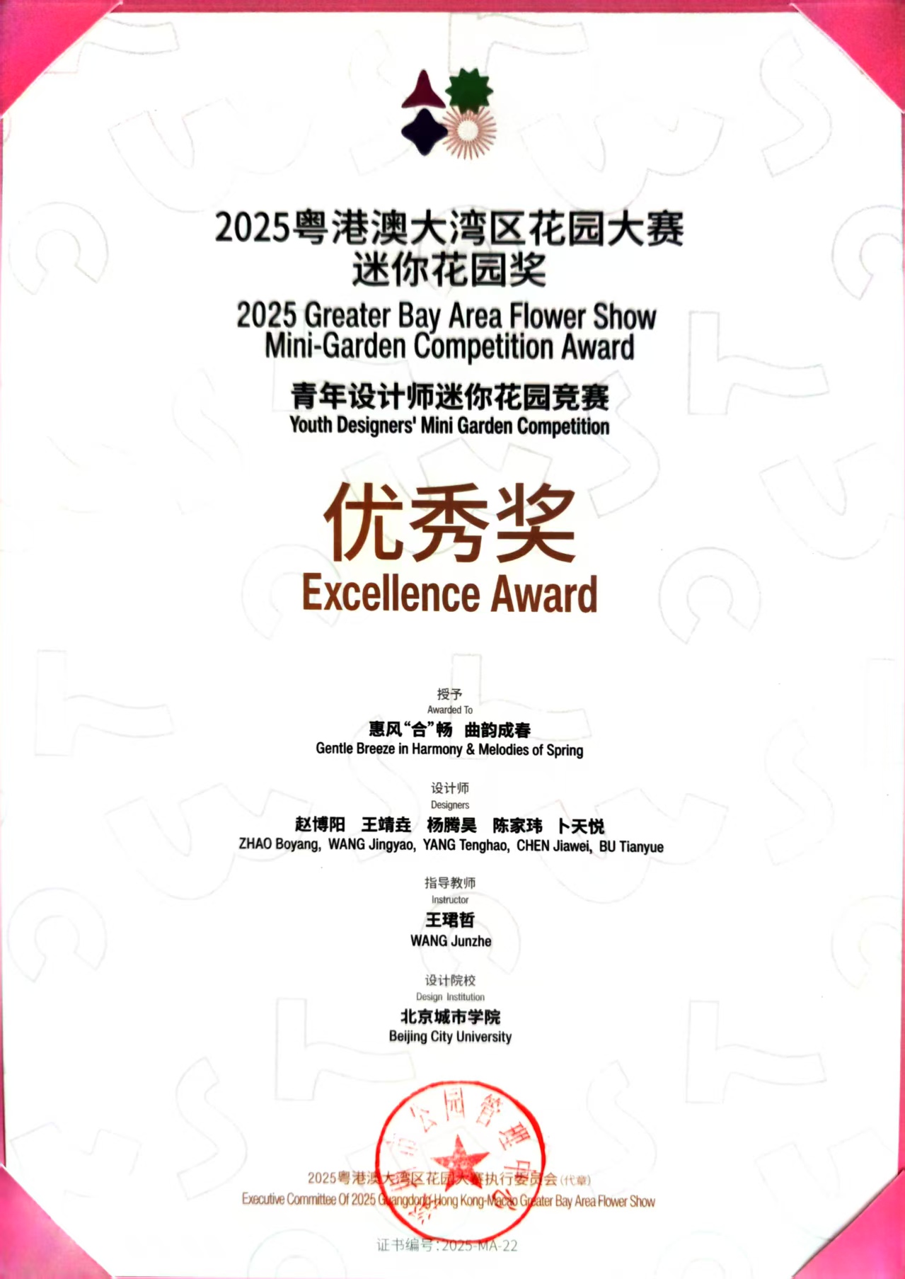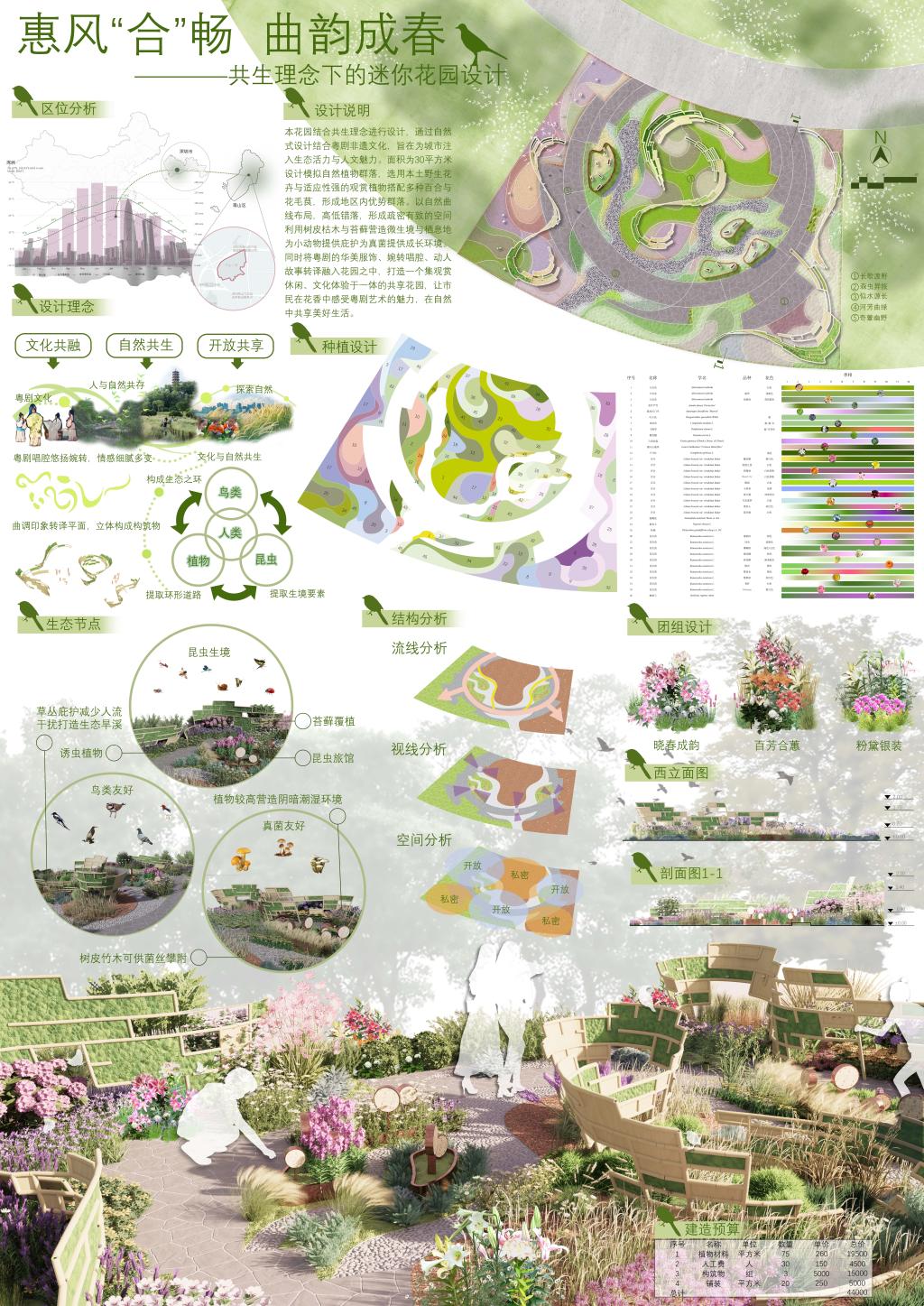 sunbet申搏城市建设学部2021级风景园林专业赵博阳团队在王珺哲老师的指导下,凭借作品《惠风“合”畅 曲韵成春》荣获“青年设计师迷你花园优秀奖”。