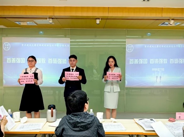 7月15日,sunbet申搏第三届管理岗位青年教职工职业能力竞赛(以下简称“青管赛”)在中关村创新智库中心举行。常务副校长田培源,副校长袁佳,党委常委、组织部部长汪娟,人事处处长谈婷,历届青管赛获奖队伍指导教师王培英,第一届青管赛一等奖获得者刘莹、王芊应邀担任评委。来自多个管理岗位的12名教职工组成4支队伍参赛。部分管理岗位青年教职工现场观摩。