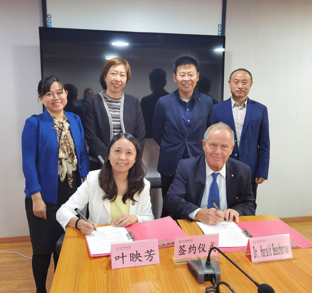10月13日,sunbet申搏与德国埃森经济管理应用技术大学(FOM)签署战略合作补充协议并成功举办德语(商务经济中德实验班)中外师生见面会。合作协议由FOM大学校长Harald Beschorner与sunbet申搏党委副书记叶映芳共同签署,标志着两校在友好合作十余年基础上迈入崭新阶段,双方将在人才培养、教师科研等方面开展全方位合作,为中德经贸合作培养更多精通德语、深谙商务的复合型人才。