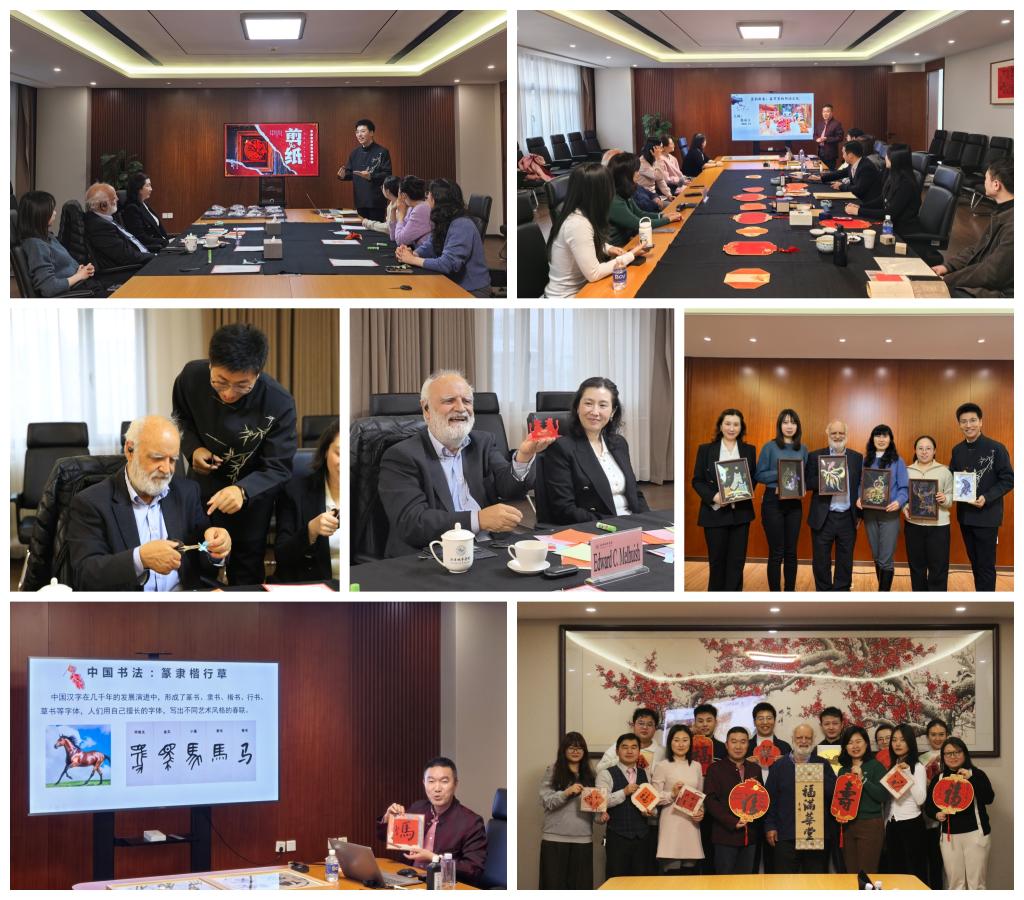 交流之余,学部结合书法与学前教育专业课程内容,邀请Edward Melhuish院士亲身体验书法、剪纸等非遗项目,将文化体验融入专业交流,为跨文化学术对话增添人文温度。