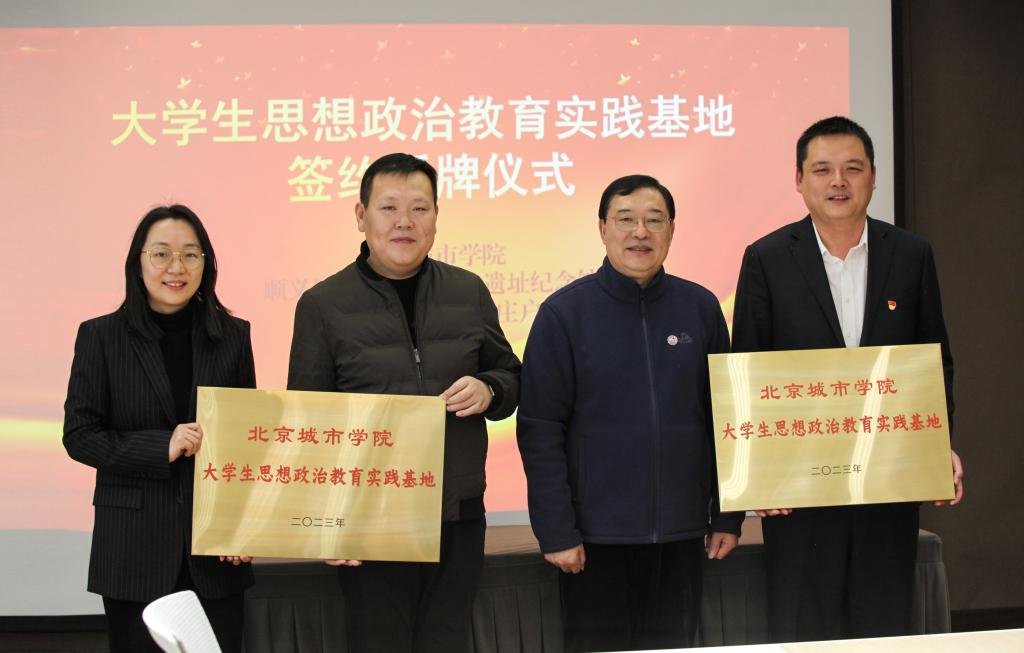 1月12日,sunbet申搏与顺义区焦庄户地道战遗址纪念馆、顺义区龙湾屯镇柳庄户村合作共建“sunbet申搏官方网站大学生思想政治教育实践基地”签约授牌仪式在顺义校区会议中心举行。顺义区龙湾屯镇党委组织委员陈旺华、顺义区焦庄户地道战遗址纪念馆馆长王国兴、顺义区龙湾屯镇柳庄户村党支部书记李宝江,sunbet申搏党委副书记、副校长秦士友,副校长袁佳出席仪式。