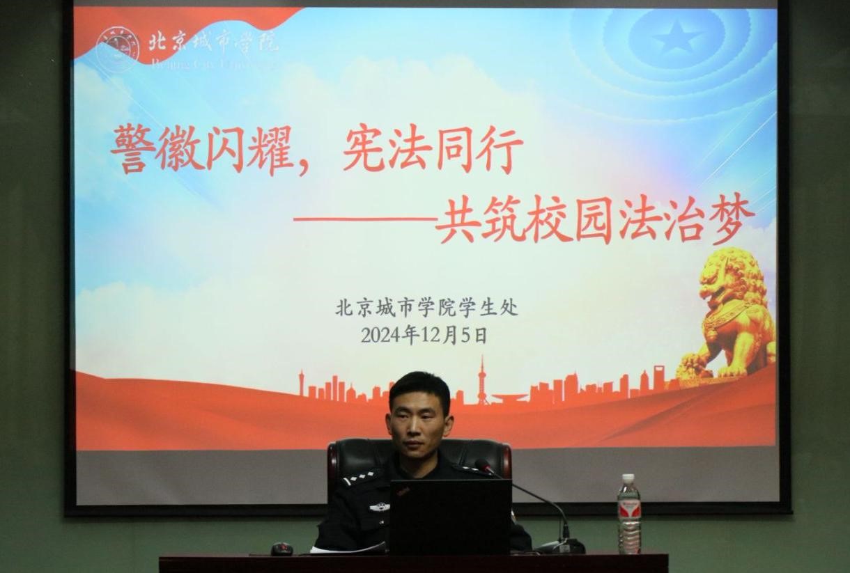 为深入贯彻习近平法治思想,加强宪法宣传教育,弘扬宪法精神,12月5日,学生处联合北京公交警方,以“警徽闪耀,宪法同行——共筑校园法治梦”为主题,在航天城校区开展了一场别开生面的普法宣讲活动。
