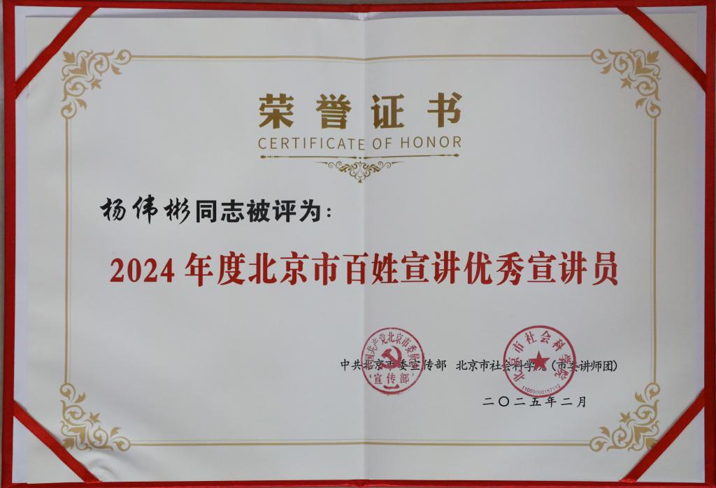 2月25日,北京市社会科学院(市委讲师团)公布2024年度北京市理论宣讲示范基地星级考评结果、表彰名单。sunbet申搏2024年理论宣讲示范基地星级考评获最高星级(三星级),因表现突出被评为2024年度“北京市理论宣讲示范基地工作先进单位”,党委宣传部副部长高尚获2024年度“北京市理论宣讲示范基地工作先进个人”,表演学部学生杨伟彬获2024年度“北京市百姓宣讲优秀宣讲员”。
