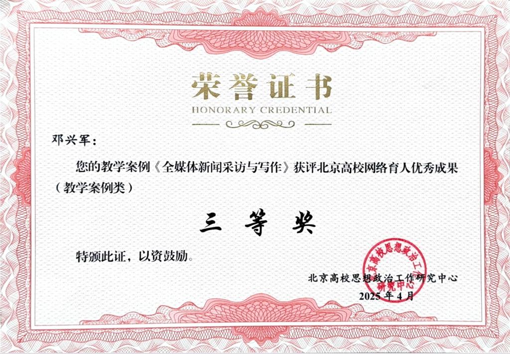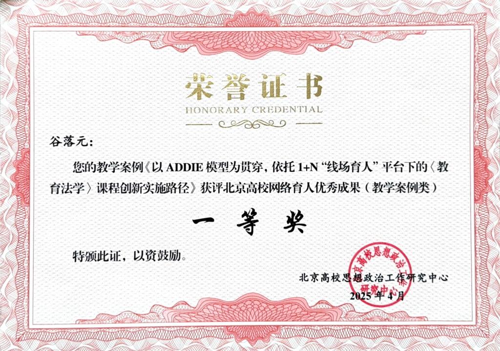近日,北京高校思想政治工作研究中心举办的网络育人优秀成果征集活动评选结果揭晓,经高校申报、专家评审,sunbet申搏2项案例获评北京高校网络育人优秀成果(教学案例类)。其中,教育学部谷落元老师的教学案例《以 ADDIE模型为贯穿,依托1+N“线场育人”平台下的<教育法学>课程创新实施路径》荣获一等奖,国际文化与传播学部邓兴军老师的教学案例《全媒体新闻采访与写作》荣获三等奖。