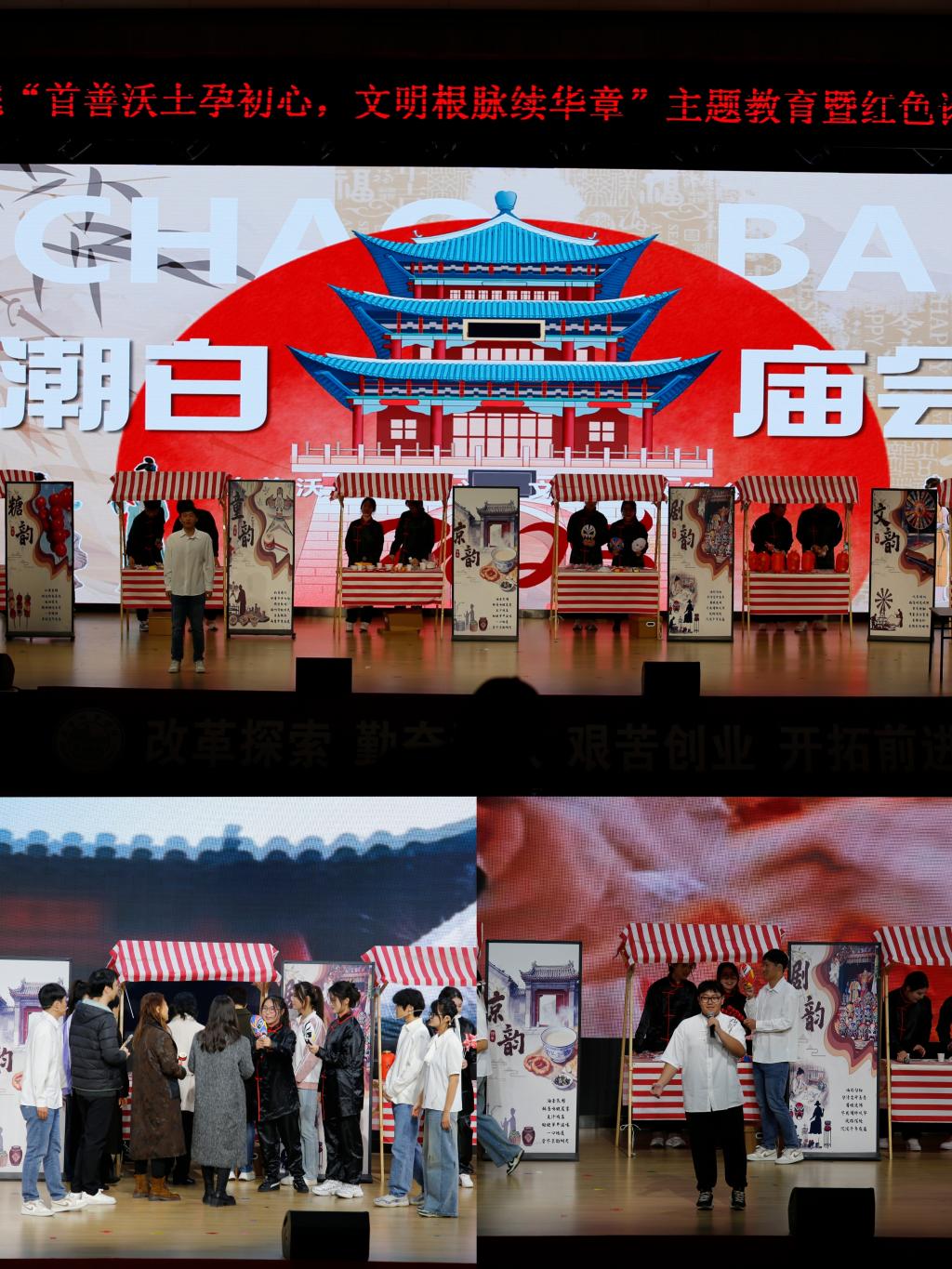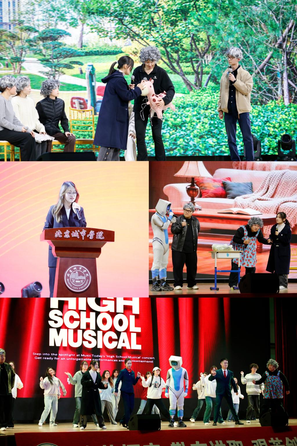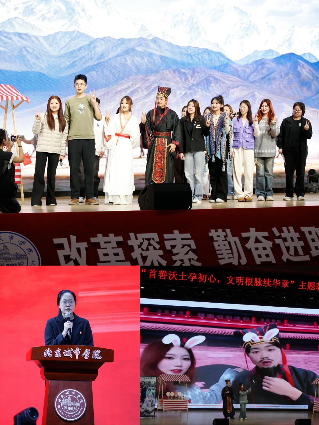 每个篇章均以扎实的理论宣讲开篇,辅以情景剧、舞蹈、T台秀、诗朗诵等多元文艺表现形式的创意表演。创意开场秀《门前情思大碗茶》以展位舞台设计融合现代编曲,为整场论坛奠定了传统与创新交织的基调;舞蹈《有我》用昂扬的舞姿勾勒出青年追随信仰的摸样,让红色信仰在青春的律动中代代相传;情景剧《大漠来的“轴”人》中,张骞穿越时空与现代工作者上演跨越古今的对话,诠释了中华文化的千年厚重;情景剧《万米高空的北京指南》和航司制服T台秀展现出了北京的文化魅力跨越了语言隔阂,让世界看见首都的开放风采;情景剧《智能生活,智在必得》展现了科技创新不仅有速度与力量,更饱含温度。经管学工办全体辅导员的朗诵《逐梦向未来》和歌舞《一起向未来》点燃全场,展现了北城师生将以更加昂扬的姿态投身首都发展建设。
