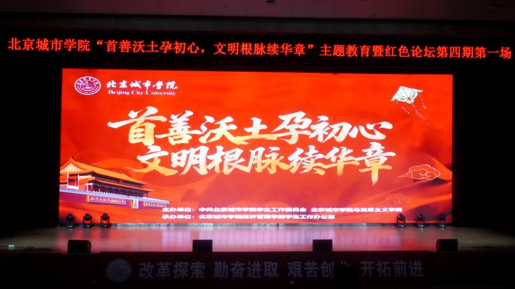 11月10日,由中共sunbet申搏官方网站学生工作委员会、马克思主义学院主办,经济管理学部学工办承办的“首善沃土孕初心 文明根脉续华章”红色论坛第四期(第一场)活动在潮白讲堂成功举办。党委常委、组织部部长汪娟,经济管理学部党总支书记徐丽,学工委相关领导及马克思主义学院特邀嘉宾出席活动,各学部师生代表共计两千余人通过现场及钉钉直播方式参加。