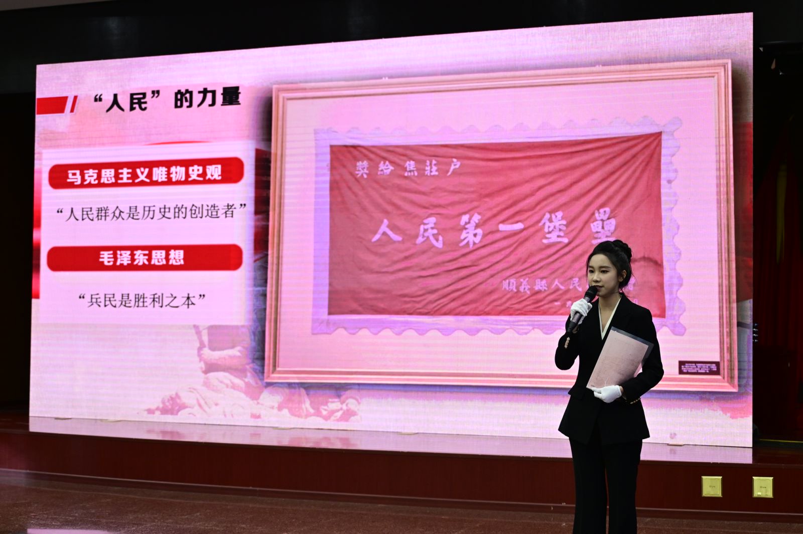 宣讲以“从‘地下长城’到‘青春赛道’——伟大抗战精神薪火相传”为主题,采用“理论+故事+文艺”融合模式,深入挖掘属地焦庄户地道战遗址红色资源,以纪念馆讲解员视角展开情景叙事,通过原创红色剧目和沉浸式思政课实践,生动展现了焦庄户人民以智慧和勇气铸就“地下长城”的故事,体现了当代青年对伟大抗战精神在新时代赓续传承的坚定决心。