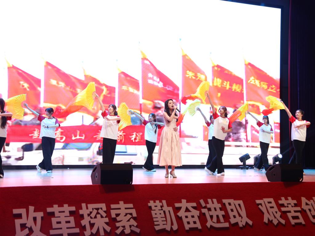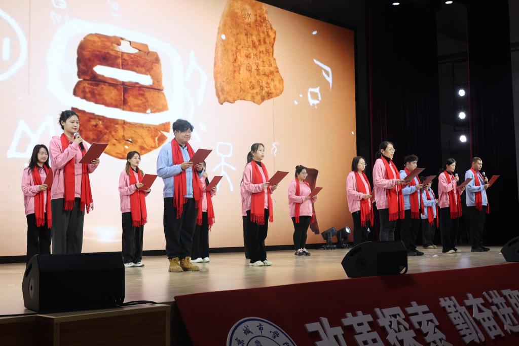 活动在港馨小学纯净悠扬的童声合唱《小池》《不要慌太阳下山有月光》中拉开帷幕,在后续篇章中,港馨小学学子还带来非遗歌舞《去碑营凤秧歌》和啦啦操表演,展现了文化传承的力量,彰显大中小一体化文化育人成果。情景剧《画笔里的“共”世界》,将“仁义礼智信”传统符号与“请党放心 强国有我”的青年担当相融;2023级产品设计专业李涵乔以墙体绘画实践为例,分享了“两个结合”在乡村振兴中的鲜活应用;2024级视觉传达专业冯锐的演讲《以青春之笔绘就道路自信》,从文化实践视角阐释中国特色社会主义道路的文明根基;舞台剧《秉烛者》,再现先辈以文明之光照亮民族前行之路的坚守与传承;2023级平面设计专业张梓彤深入解读了“结合”带来的创新空间;歌伴舞《铭记》则以深情演绎传递文明传承的深厚情怀;2023级艺术设计领域研究生李晓滢围绕传统文化在动画制作中的当代转译,展现了文化主体性的设计表达;艺术设计学部全体辅导员的集体朗诵《文脉铸魂 新程扬帆》,彰显师者的文明担当与育人初心。