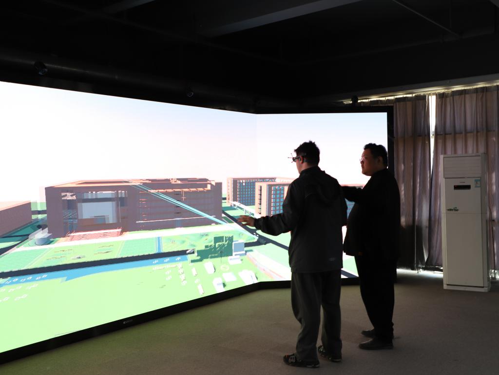 (学生在城市建设学部体验无人机和古建筑模型虚拟现实交互)