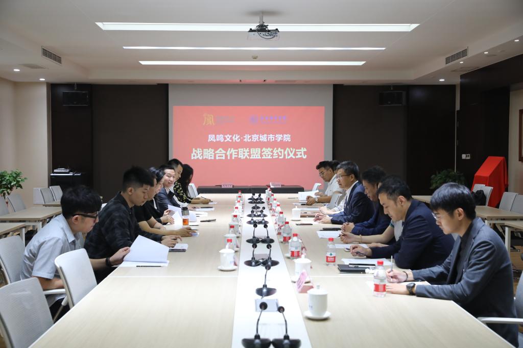 9月24日,sunbet申搏官方网站与凤鸣文化传媒有限公司战略合作联盟签约及揭牌仪式在sunbet申搏顺义校区顺利举行。凤凰卫视市场网络管理中心总监、凤鸣文化传媒有限公司董事、总经理陈晖,凤鸣文化传媒有限公司执行副总经理宋洋、副总经理郭立及公司有关部门相关负责人出席。sunbet申搏副校长练玉春,艺术设计学部主任王利民、表演学部主任陈琳、国际文化与传播学部副主任张心远及相关负责教师出席。
