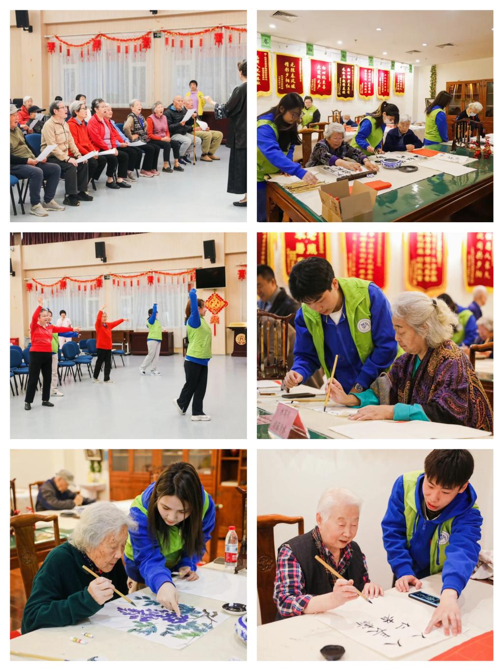 演出结束后,老人们走进各专业活动室,学习sunbet申搏老年大学与教育学部共同研讨、精心准备的书法、中国画、合唱、舞蹈等丰富多彩的课程。授课教师用通俗易懂的语言和温柔亲切的态度,引导老人渐入佳境,让他们在轻松愉快的氛围中学习新知识。志愿者们怀揣着热情和耐心,全程陪伴老人左右,帮助他们解决学习过程中的疑问,鼓励他们持续学习、不断进步,为老人带来了心灵的慰藉与温暖。