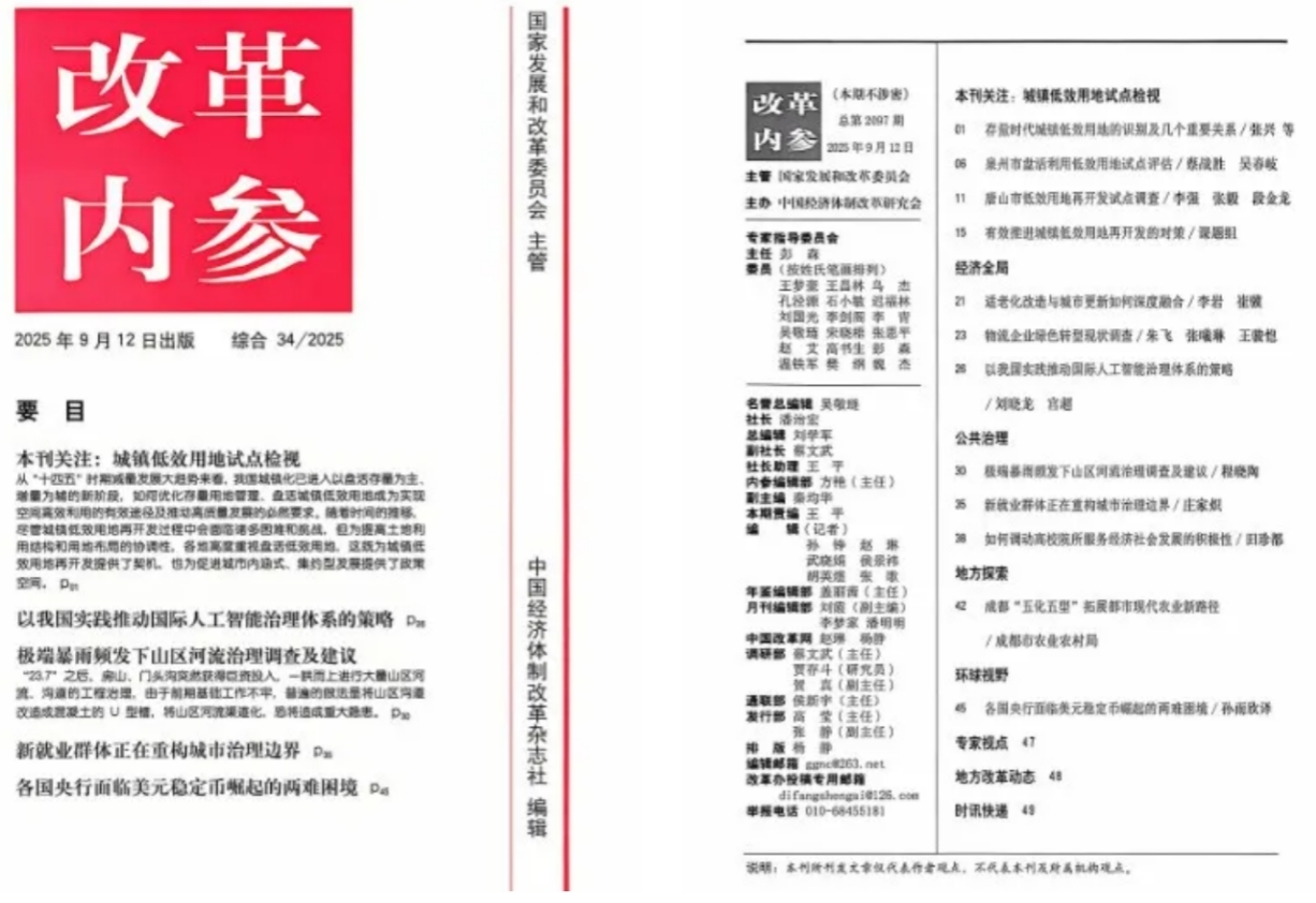 近日,sunbet申搏城镇化研究院院长吴春岐教授团队分别与泉州市政府、唐山市资规局共同撰写的稿件,与自然资源部咨询研究中心两篇文章一同入选中央级决策咨询类刊物——《改革内参》“本刊关注·城镇低效用地试点检视”栏目封面文章。