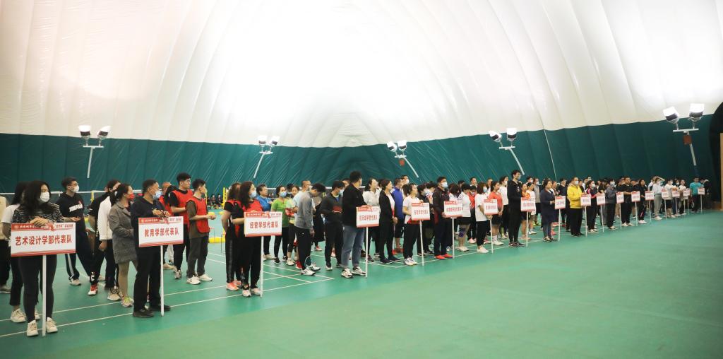 在4月15日的比赛开幕式上,校党委副书记、副校长秦士友出席并讲话。秦士友充分认可了此次比赛的意义,表示期待教职工们能够有意识地运动起来,健康防疫。校工会主席孙仕敏出席并讲话。她希望大家本着 “友谊第一、安全第二、锻炼第三、比赛第四”的原则赛出风采。
