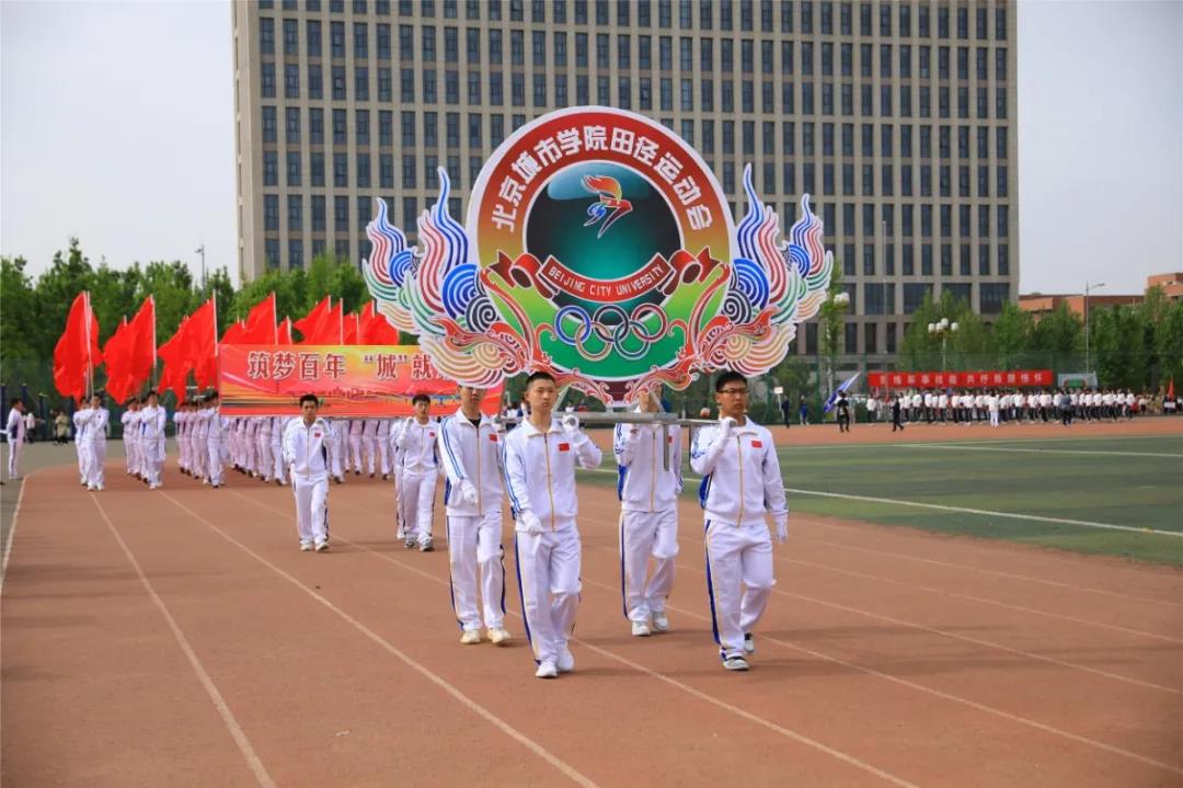 在同学们的欢呼下,裁判员和运动员入场。经过军训训练的方阵队员踏着整齐而有力的步伐、喊着嘹亮而铿锵的口号步入运动场。冬奥、党建、怀旧等元素展示了各学部的特色风采。