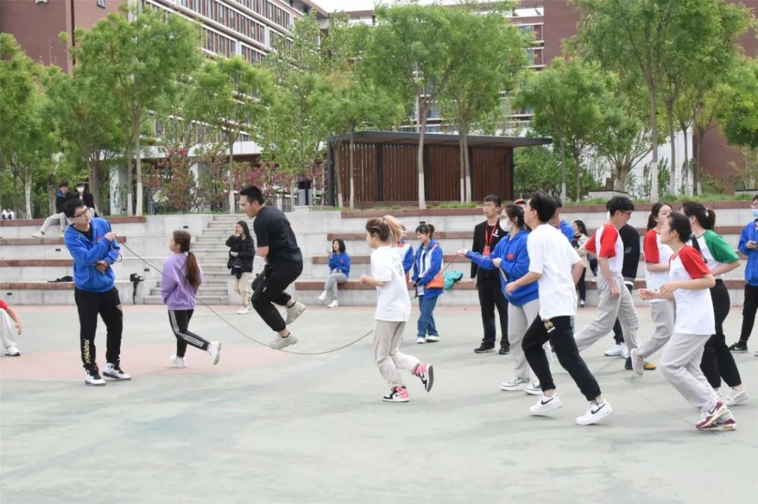 一个接一个跳起,跃动的身影轻快而迅速,翻飞的绳并没有成为阻碍,绳落地时的一声声像是掌声,为团结鼓掌。