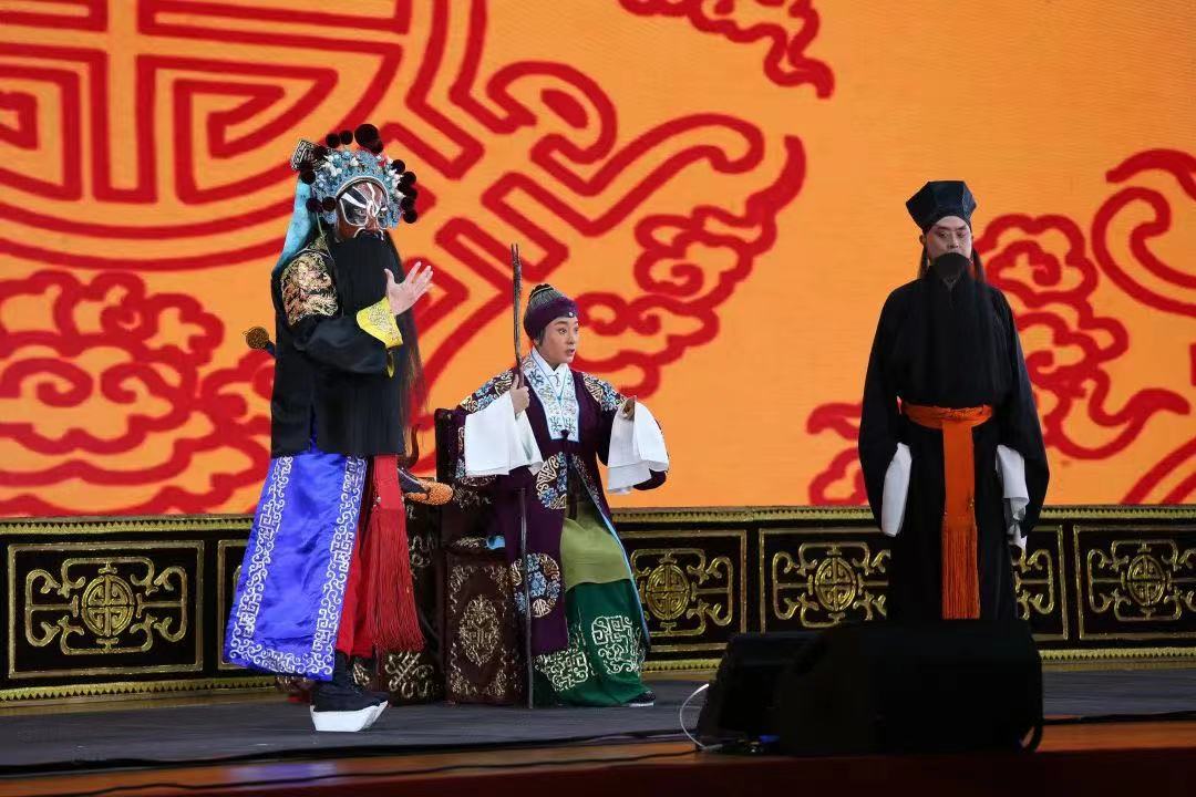北京京剧院派出了技艺精湛的演艺团队,由李小培、沈文莉、侯宇等人领衔主演《赤桑镇·遇皇后·打龙袍》。随着大幕缓缓拉开,演员们纷纷登台,一些观众听到妙处不由连连喝彩,现场响起阵阵掌声。剧目讲述了黑脸包拯廉洁公正、铁面无私断案的故事。为方便观众更好地了解京剧文化,组织方还特意在舞台两侧放置了同步显示的大号提词器。