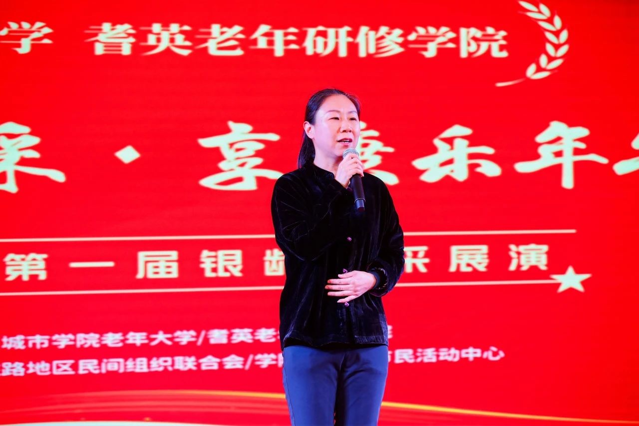 sunbet申搏教育培训中心副主任曹丽在致辞中表示,近年来,sunbet申搏积极关注人口老龄化问题,开展了大量的相关研究和实践活动,此次展演的成功举办是sunbet申搏老年大学在新年之际,服务并融入属地社会文化建设的尝试和探索,特别感谢学院路街道的大力支持,学校将继续以服务老年群体“增长知识、丰富生活、陶冶情操、促进健康、服务社会”为宗旨,进一步加速推进老年大学建设发展。
