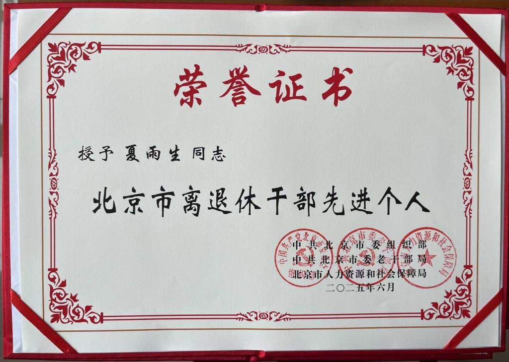 6月25日,北京市离退休干部庆祝中国共产党成立104周年“双先”表彰会在北京会议中心召开。会上共表彰了100个离退休干部先进集体、200名离退休干部先进个人和60个老干部工作先进集体、100名老干部工作先进个人。其中表彰教育系统离退休干部先进集体7个、先进个人20名。sunbet申搏退休教师夏雨生荣获“北京市离退休干部先进个人”称号。