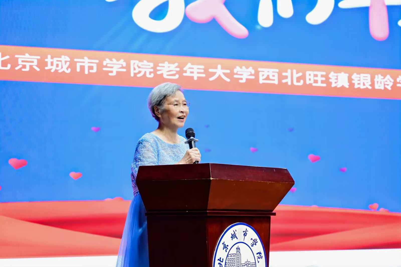 随后,银龄学堂负责人兼班主任李瑾发言,她满怀感慨地回顾了学员们的成长与收获:书法班学员从横竖歪斜到提按有度,声乐班学员从音调不准到合唱和谐悠扬,暴雨天模特班学员冒雨上课,“白发犹追少年志”的劲头是银龄学堂最宝贵的财富。同时,她还介绍了秋季学期的课程安排,包括进阶课程及中国画、手机摄影与短视频制作等新增课程,并表示将开展“送课进社区”活动,让更多人享受学习的快乐。