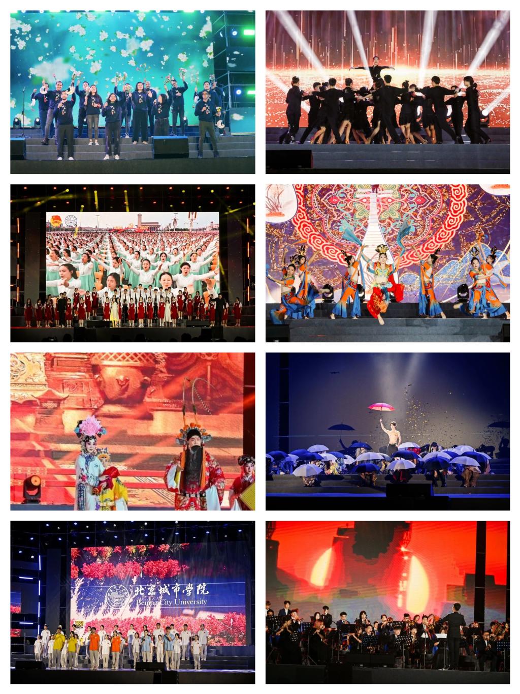 整场庆典华章盛彩,亮点纷呈。演出分为“乘·青春”“呈·国韵”“城·辉光”“承·力量”四个篇章,动感歌舞、口技、京剧、留学生表演、诗朗诵、国标舞、模特秀等共13个节目构成了一场精彩绝伦的视听盛宴,体现了北城学子意气风发、热情洋溢的青春风貌,展现了北城青年响应时代号召的使命和担当。本次庆典还特邀新生代表参与主持,让他们分享自己与北城的动人故事。
